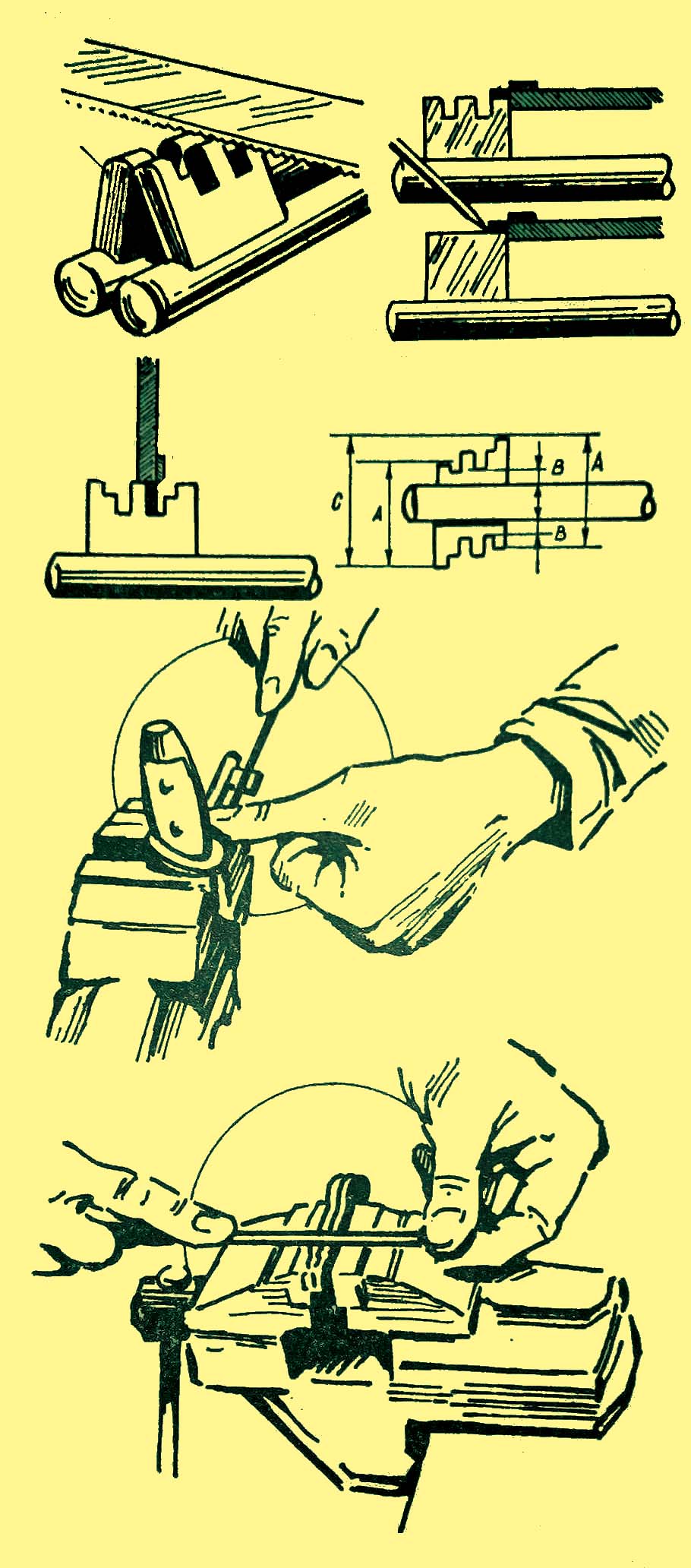 ۱۳ – ساخت دسته از میلگرد یا ورقههای ۵، ۶ یا ۸ میلیمتری به شکل نعل اسب (اگر قفلی مسی باشد باید دسته هم مسی باشد و به همین ترتیب فلزات دیگر هم باید قفل و دسته شان هم جنس باشند).