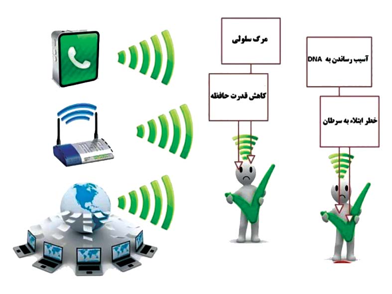 این امواج خطوط نامرئی از نیروی احاطه شده در تجهیزات الکتریکی بوده و خطوط انرژی، تجهیزات و اتصالات الکتریکی همه تولید کننده EMF هستند. طیف فرکانس این امواج مقادیر ۰ تا ۳۰۰ گیگاهرتز را شامل میشود. این مقادیر همه فرکانسهای موجود در محیط زیست و تکنولوژی مورد مصرف را شامل میشود.یکی از وسایلی که کاربرد همگانی دارد و افراد در گروههای سنی مختلف، از آن استفاده میکنند، تلفن همراه است. نوع و میزان مضر بودن امواج ناشی از کاربرد تلفن همراه، هنوز به صورت رسمی و کامل مشخص نشده است.اثرات مضر شناخته شده موبایل بر سلامت و تندرستی که هنوز از منابع رسمی و آکادمیک اعلام نشده اند به شرح ذیل هستند: سرطان زایی، ضعیف کردن سیستم دفاعی بدن، کاهش قدرت باروری و قوای جنسی در آقایان، افزایش احتمال ابتدا به بیماریهای آلزایمر و پارکینسون، تغییر ساختار آنزیمی بزاق دهان، تاثیرات منفی روی خون و ادرار، افزایش سرعت گسترش تومورها…