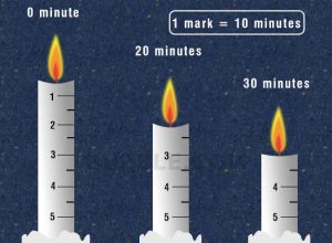 ساعتهای شمعی نیز در نقاطی که مردم به ساعتهای شنی دسترسی نداشتند بیشتر استفاده میشد. یک شمع که دارای بدنه درجهبندی شده بود را روشن میکردند و با سوختن شمع و کوتاه شدن آن زمان را محاسبه میکردند.