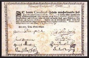 در سال ۱۹۶۶، سوئد اولین دولت اروپایی بود که اسکناسهای دولتی خود را به عنوان یک پول قانونی صادر کرد. تا سال ۱۶۹۴، «بانک انگلیس» به عنوان بخشی از تلاش «پادشاه ویلیام سوم» برای تامین مالی جنگ علیه فرانسه، به اولین بانک دولتی تبدیل شد که به صدور دائمی پول کاغذی اقدام کرد.