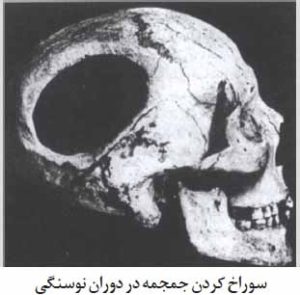 در استخوان های جمجمه، شاید در اولین اعمال جراحی تاریخ، سوراخ هایی تعبیه شده است. در بعضی از جمجمه ها چندین سوراخ وجود دارد که اطراف آن ها را استخوان هایی پوشانده اند که پس از سوراخ کردن پدید آمده اند. این ثابت می کند که نه تنها این اعمال جراحی بر روی انسان های زنده انجام شده است بلکه این بیماران به طور عجیبی زنده مانده اند و حتی اجازه داده اند که مجدداً بر رویشان جراحی انجام گیرد. انسانها در دوره نوسنگی، بعضی از اولین اعمال جراحی جهان را انجام میدادند. آنها با ایجاد سوراخهایی در جمجمه انسانهای زنده، احتمالاً در صدد کاهش فشار بر روی مغز بودند.