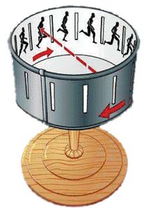 صفحه مقوایی که بین دو تکه نخ کار گذاشته شده و روی یک وجه آن یک قفس و روی دیگری یک میمون نقاشی شده است (این وسیله دارای طرح‌های دیگر نیز می‌باشد ، پرنده و میمون صرفاً برای مثال است ) . وقتی نخ ها را تاب می‌دهید ، تصاویر در هم ادغام می‌شوند و به نظر می‌رسد پرنده درون قفس است .