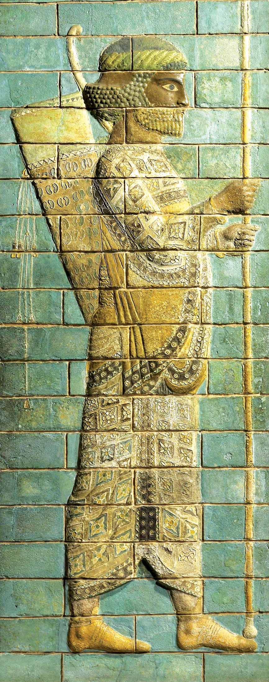 تزئینات به جای مانده از زمان هخامنشیان حکایت از کاربرد آجرهای لعابدار رنگین و منقوش و ترکیب آنها دارد، بدنه ساختمانهای شوش و تخت جمشید با چنین تلفیقی آرایش شدهاند، دو نمونه جالب توجه از این نوع کاشیکاری در شوش به دست آمده که به «شیران وتیراندازان» معروف است. علاوه بر موزون بودن و رعایت تناسب که در ترکیب اجزاء طرحها به کار رفته، نقش اصلی همچنان حکایت از وضعیت و هویت واقعی سربازان دارد. چنان که چهرهها از سفید تا تیره و بالاخره سیاه رنگ است، وسایل زینتی مانند گوشواره و دستبندهایی از طلا در بردارند و یا کفشهایی از چرم زرد رنگ به پا دارند. از تزئینات کاشی همچنین برای آرایش کتیبهها نیز استفاده شده است. رنگ متن اصلی کاشیهای دوره هخامنشیان اغلب زرد، سبز و قهوهای میباشد و لعاب روی آجرها از گچ و خاک پخته تشکیل شده است.