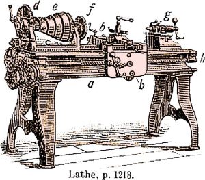 عکسی از یک ماشین تراش که نشان میدهد از سال ۱۹۱۱ به همین شکل بوده و قطعاتی همچون اسپیندل، مرغک، چهارنظام و… تشکیل شدهاست