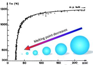به نمودار تغییرات دمای ذوب نسبت به اندازه نانو ذرات توجه کنید.